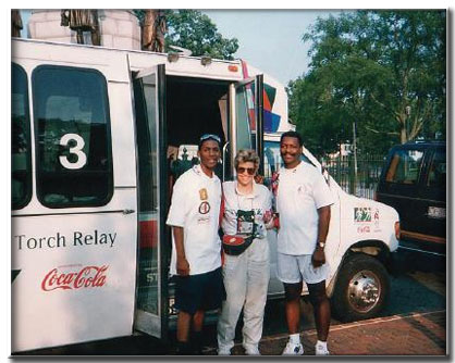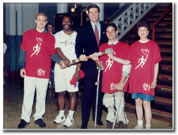 (Gov. now Senator) George Allen with Kermite and other torch bearers at state press conference in Virginia